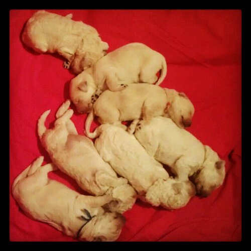 The puppies are growing so much! They are now two pounds and have doubled their size. Their one week pictures have been uploaded to the puppies tab. We hope you all have a wonderful day!