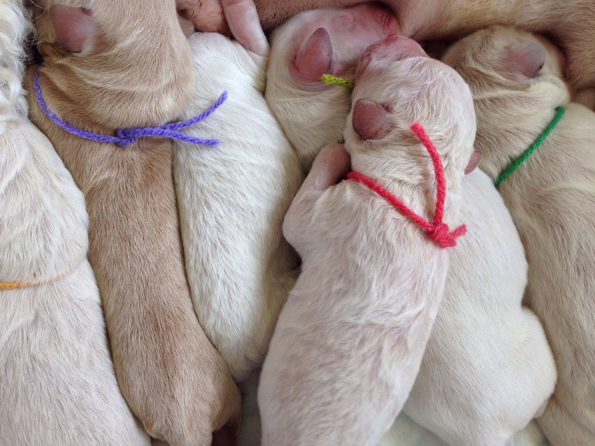 The puppies are here, and we could not be more excited. Reef has only left them two times to use the bathroom, and I had to drag her out because she did not want to leave her babies. They are very sweet puppies, and we are already having a blast holding and snuggling them for their new owners.