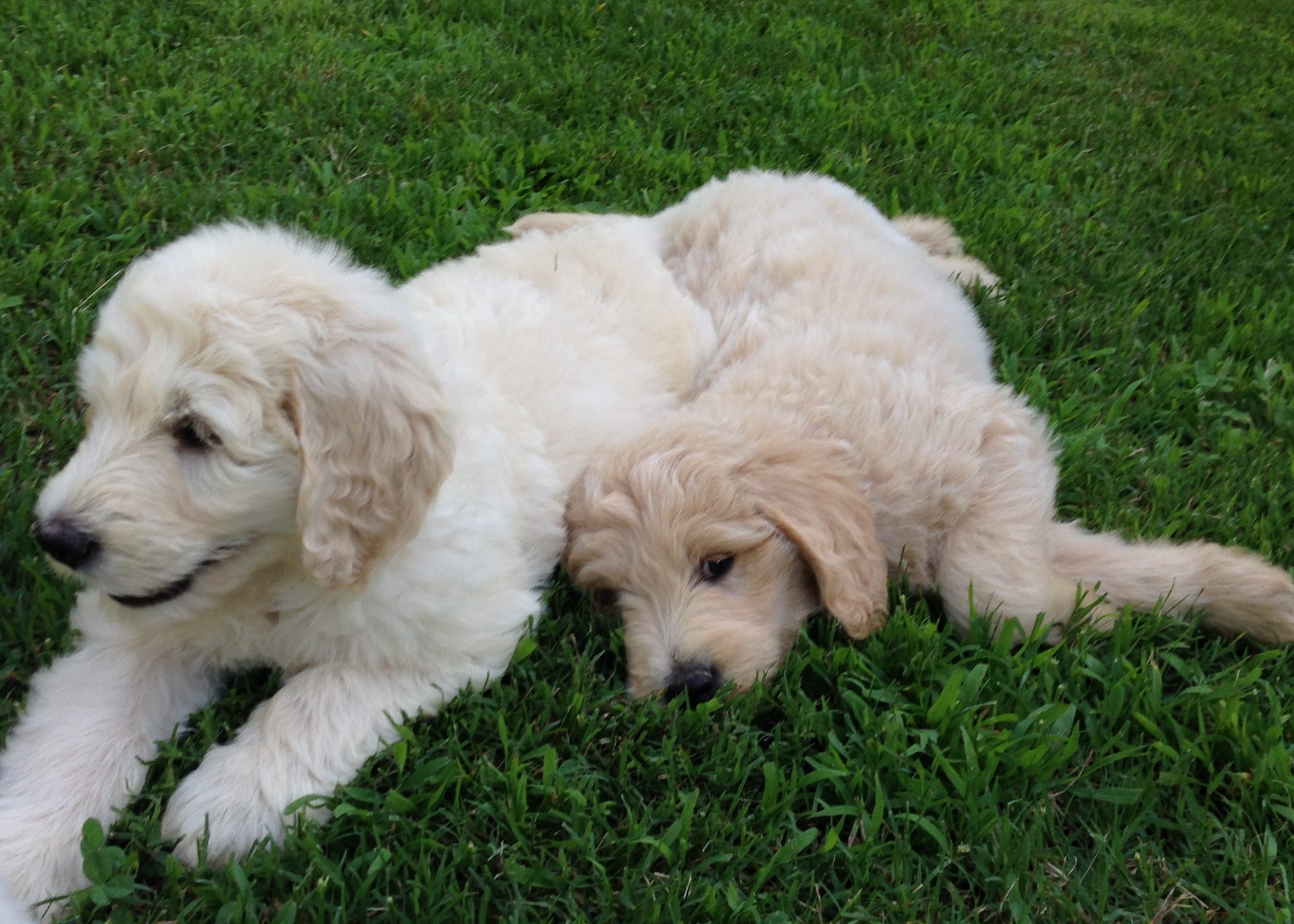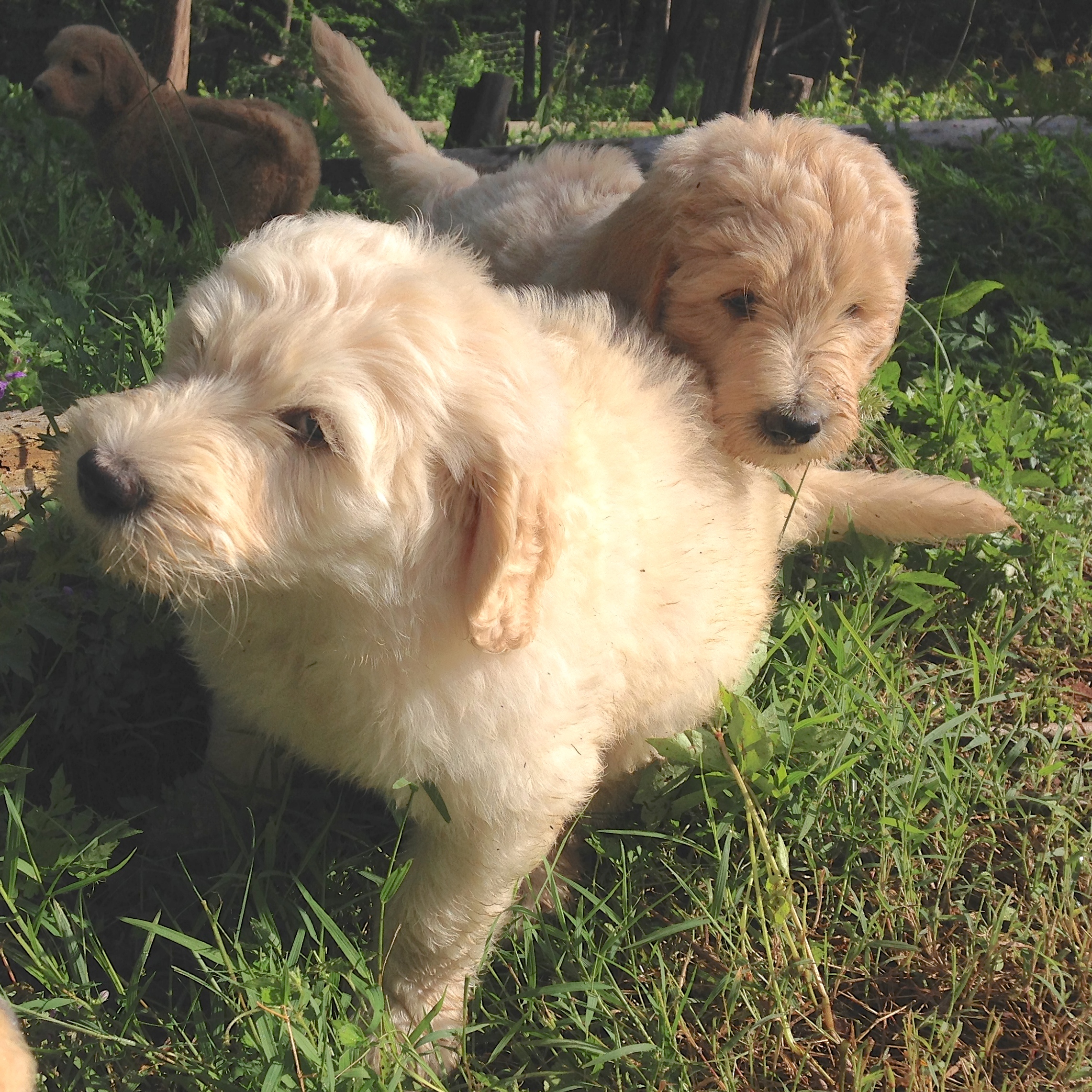The puppies learned how to climb up and down the steps this week. They also love to roam all over our backyard exploring. They are also doing really well at coming when I call them, most of the time. 🙂
