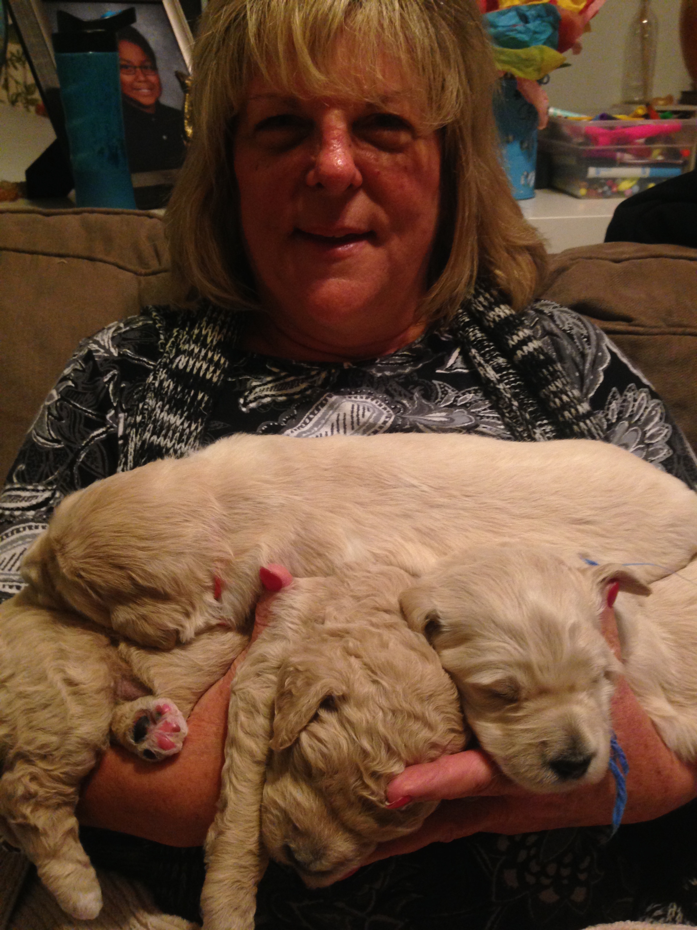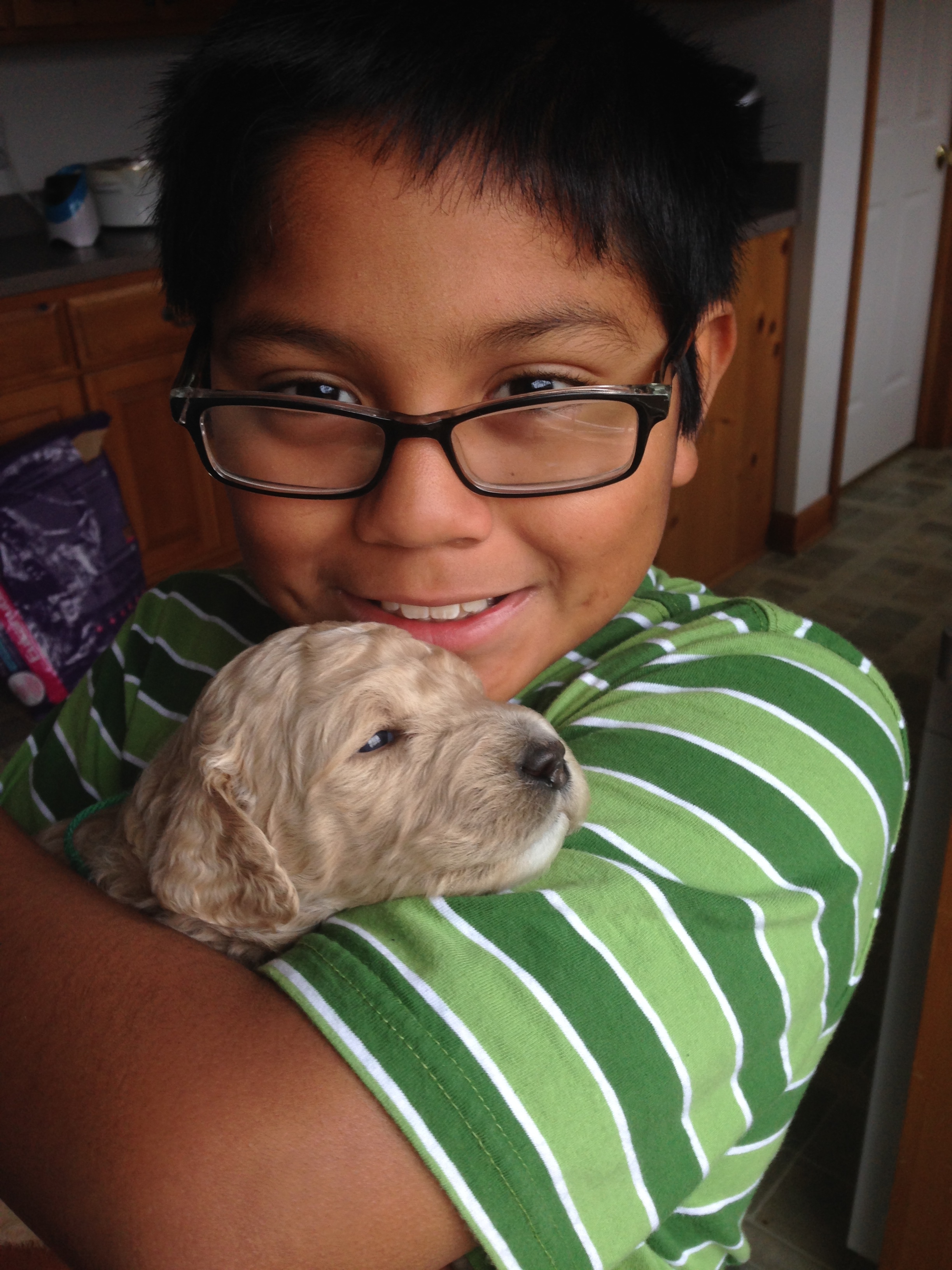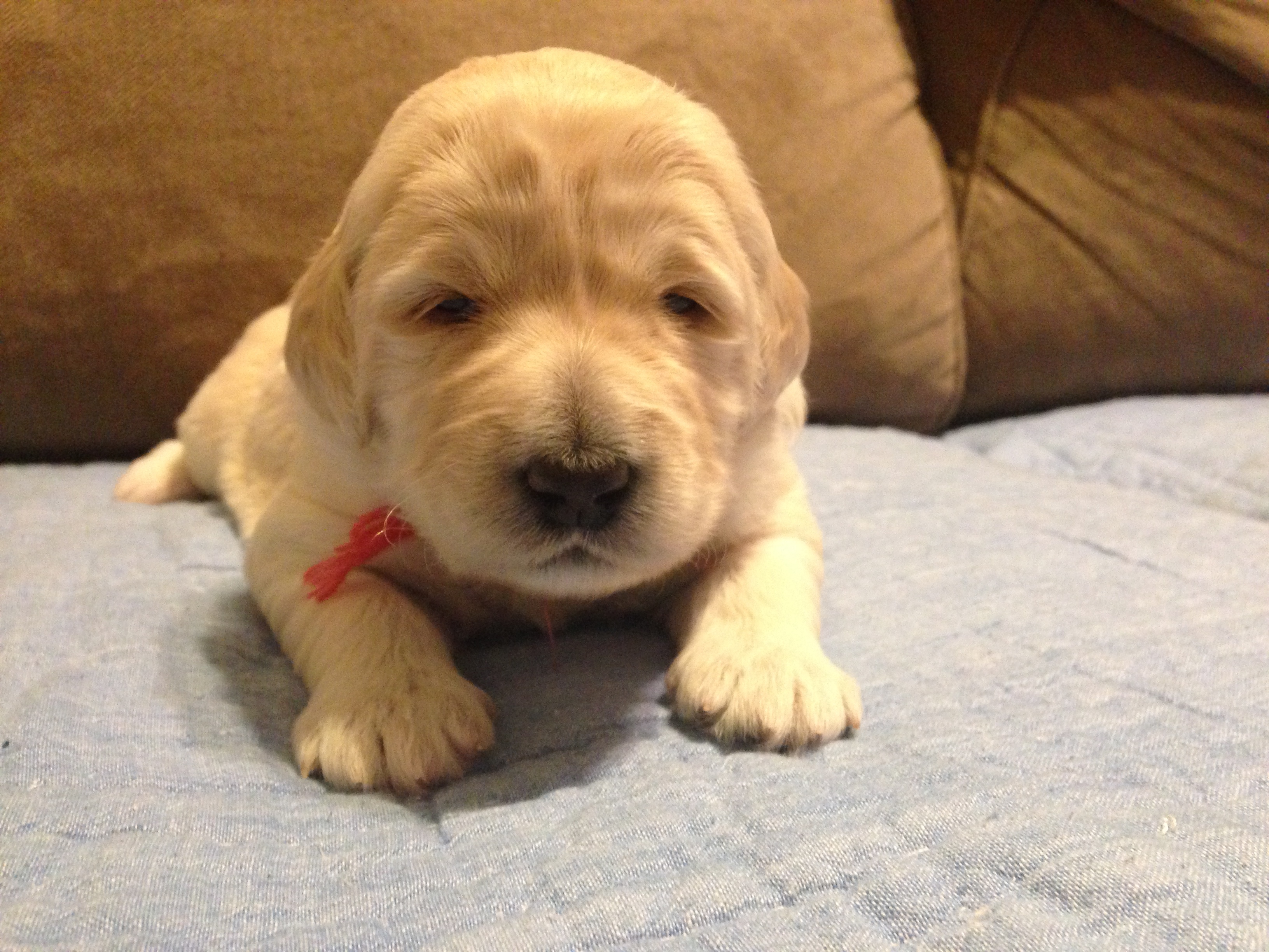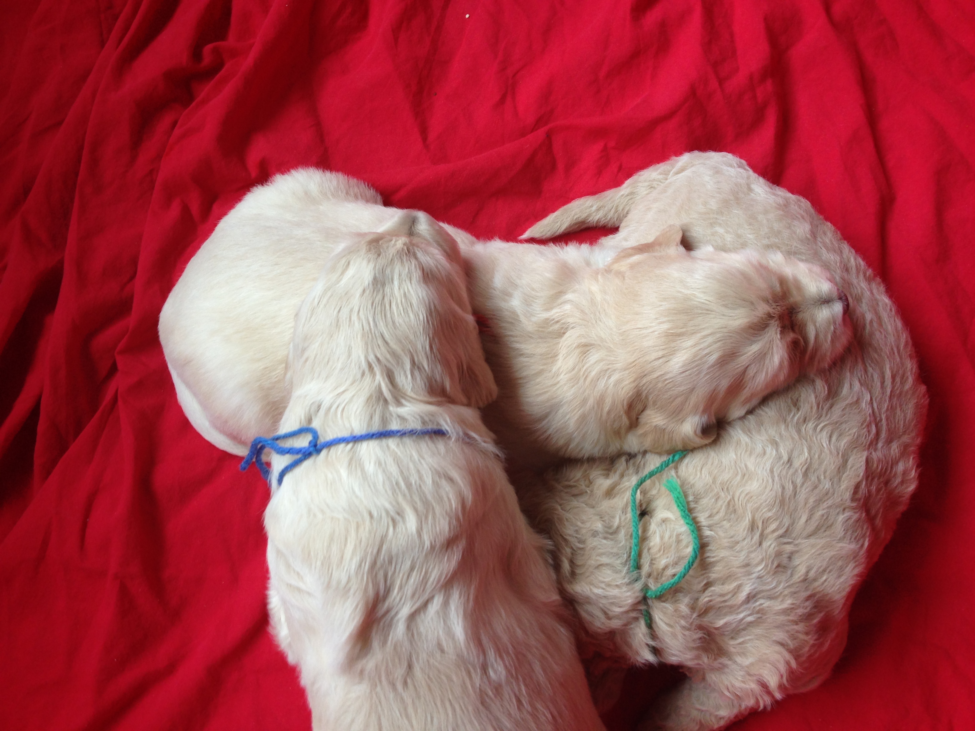 This week has been so much fun! The puppies are starting to play with each other and will come sit near us now that they can see more clearly! We are excited to start having visitors come to visit, hold, and love on the puppies next week. The family that has first pick has decided on Red Collar who will now be called April! Let me know if you are interested in coming to visit by emailing rowboatfarmdoodles@gmail.com. How can you resist these cuties?!?