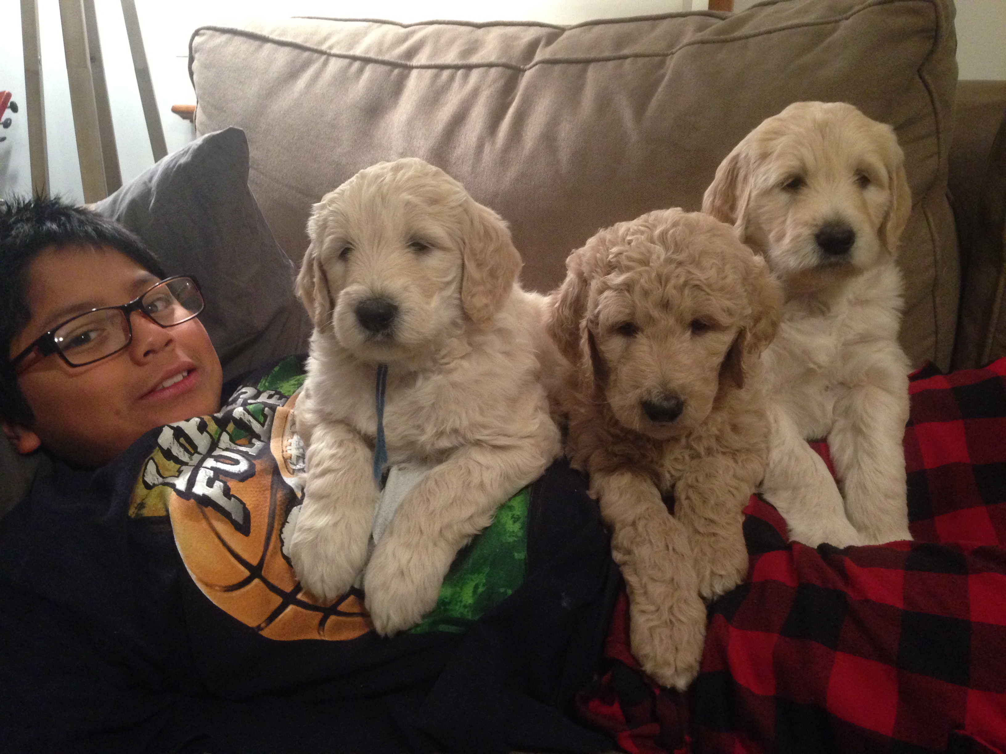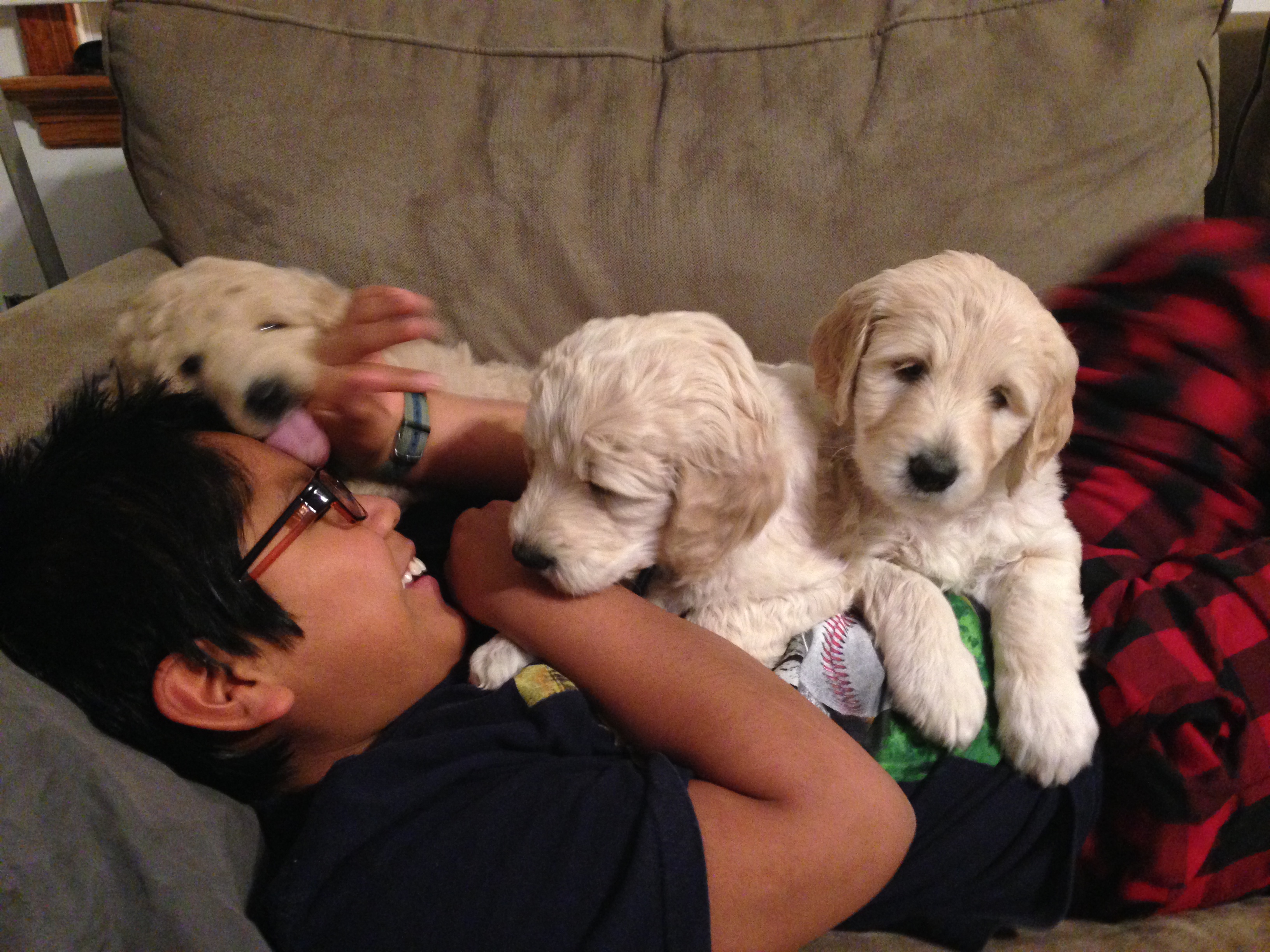 Two more weeks until the puppies head to their new homes! They are really starting to play with us and each other. They also love to cuddle!