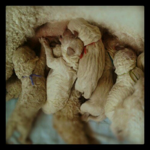Rowboat Farm is excited to announce that Reef had her puppies early this morning! She has SIX boys and one little girl. I will be uploading pictures soon of the individual puppies. It has been a very busy night! 🙂