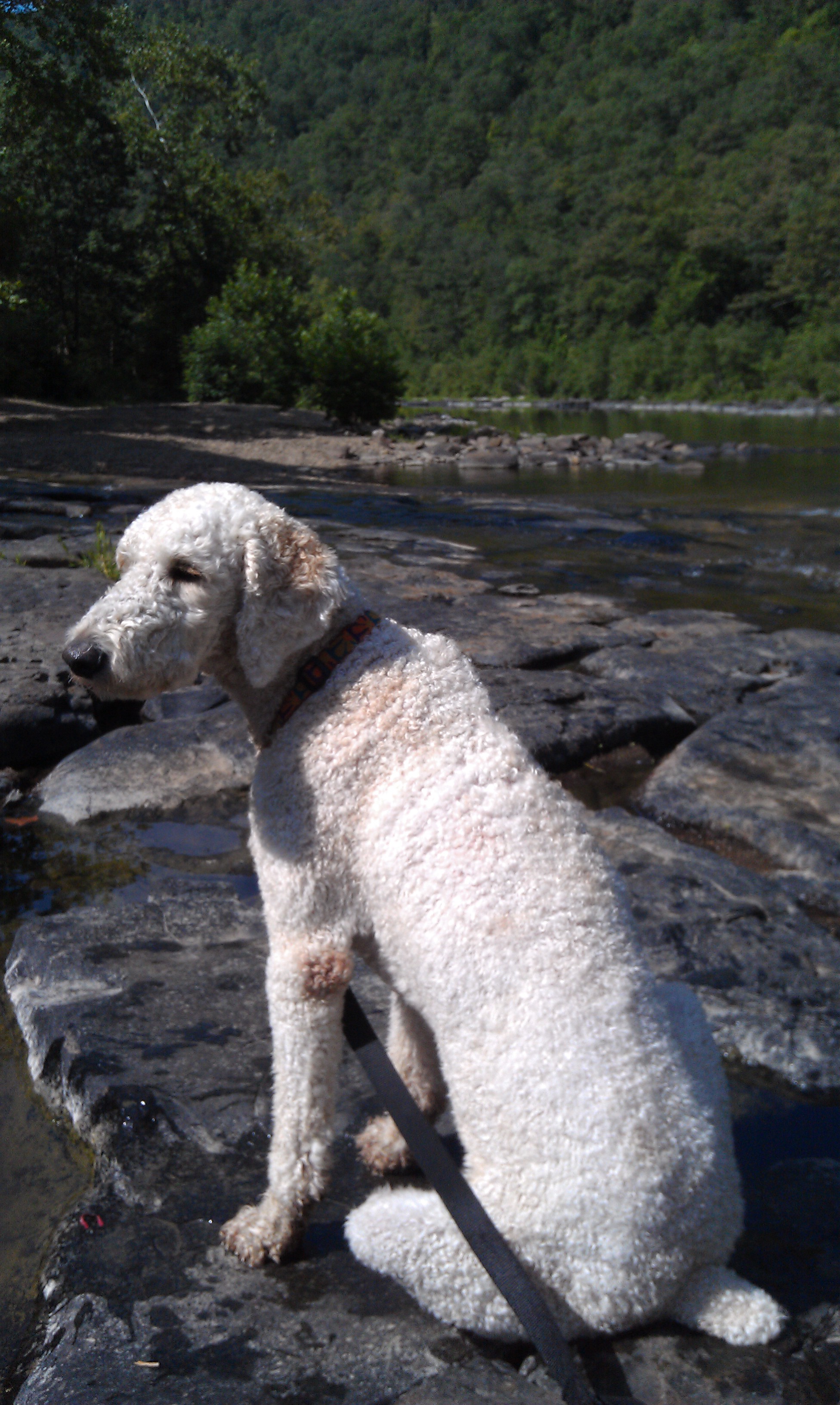 Reef is an AKC registered Standard Poodle. She has a wonderful temperment and loves children. She often jumps in bed to wake all the young ones in the house! She is goofy, but loves anyone and everything. She is currently six years old and weighs approximately 50 pounds. Her coat is cream in color with a very tight curl. She loves to follow me around the house and lays at my feet wherever I am working. Her favorite things are chasing other dogs, walking through the woods, and being rubbed.