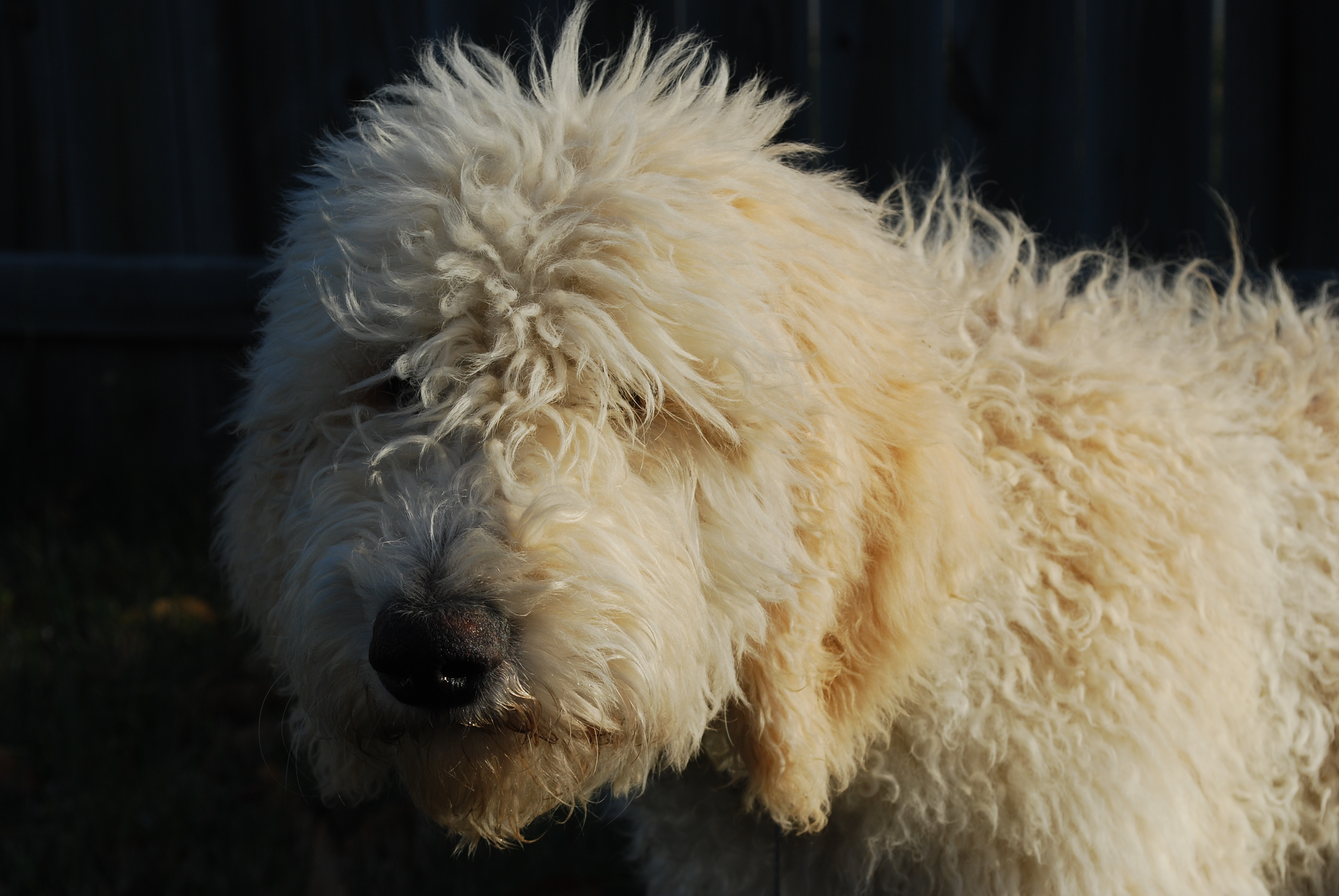 Born: October 2009 Female Weight: 51 pounds Height:24 inches Coat type: Cream, tight curl, no shedding