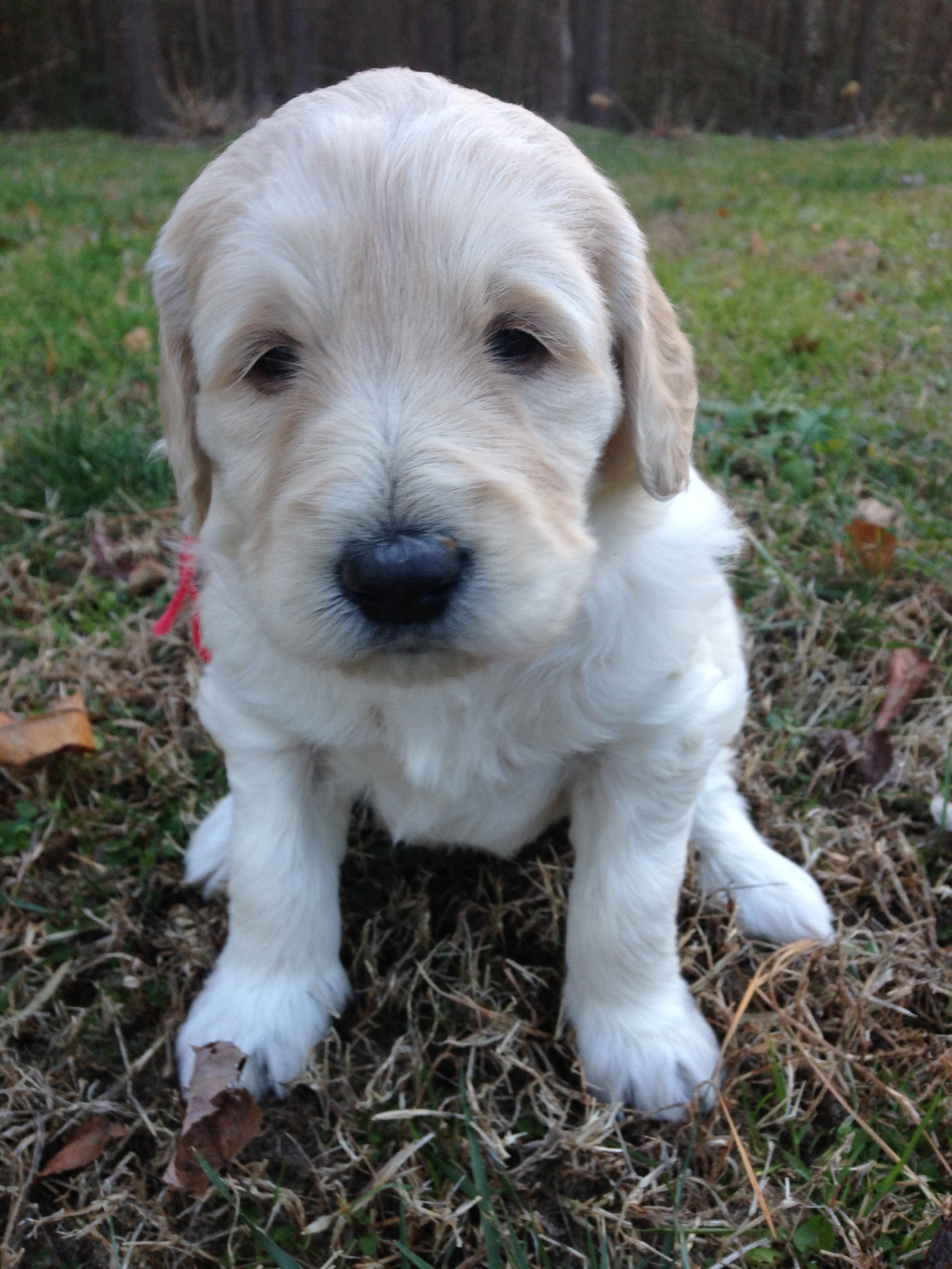 Reef and Dock had a litter of F1B goldendoodles on January 3rd, 2015. She had two females and one male. These puppies will be 50-70 pounds and will be little to no-shedding. She had two light cream and one darker cream puppy with both wavy and curly coats. These puppies will be ready for their new homes February 27th. We will be posting weekly pictures of the puppies below. If you have any questions, please feel free to contact us.